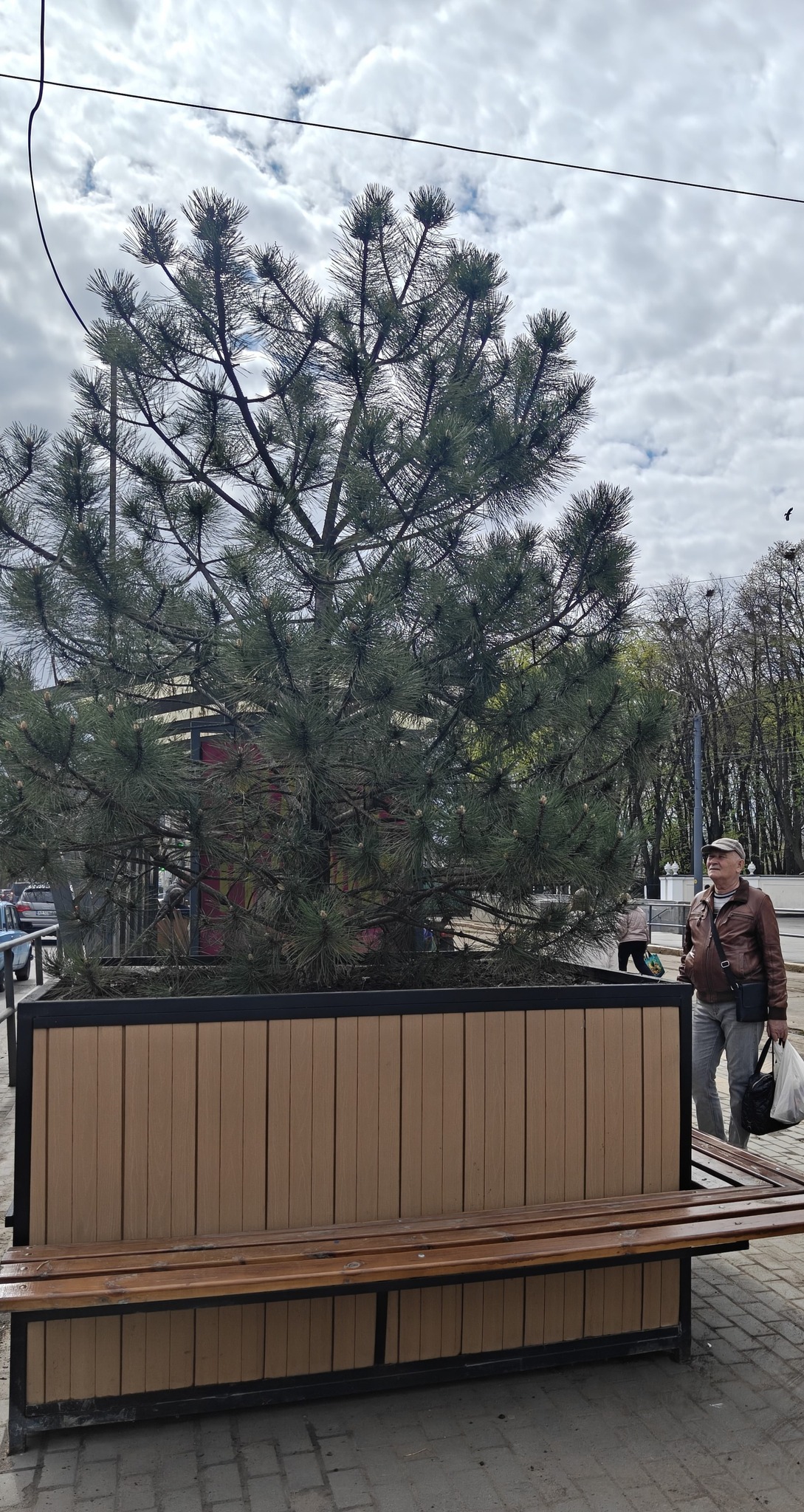 У кашпо наразі ростуть сосна та сакура, яку висадили працівники МКП Вінницязеленбуд.
