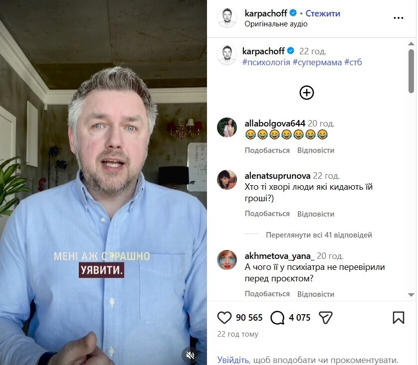Ситуація набула розголосу після того, як на неї відреагував психолог та ведучий шоу «Супермама» Дмитро Карпачов. У своєму Instagram він офіційно заявив, що Діана Поліщук ніколи не була учасницею проєкту, а весь контент був створений виключно задля виманювання коштів у довірливих підписників. Ведучий закликав аудиторію бути обачними та не перераховувати гроші шахраям, які спекулюють на популярності телешоу.