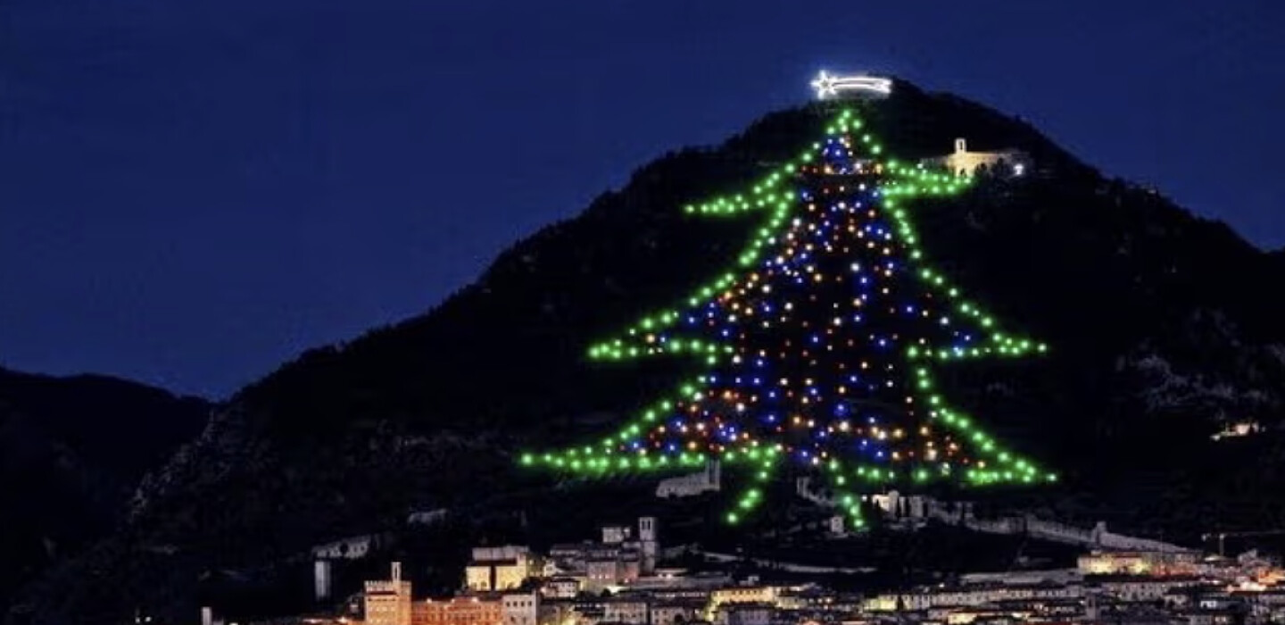 Це пласка споруда у формі ялинки, яку встановлюють поряд із містом Губбіо в Італії, також потрапила до Книги рекордів Гіннеса як найбільша різдвяна ялинка у світі.