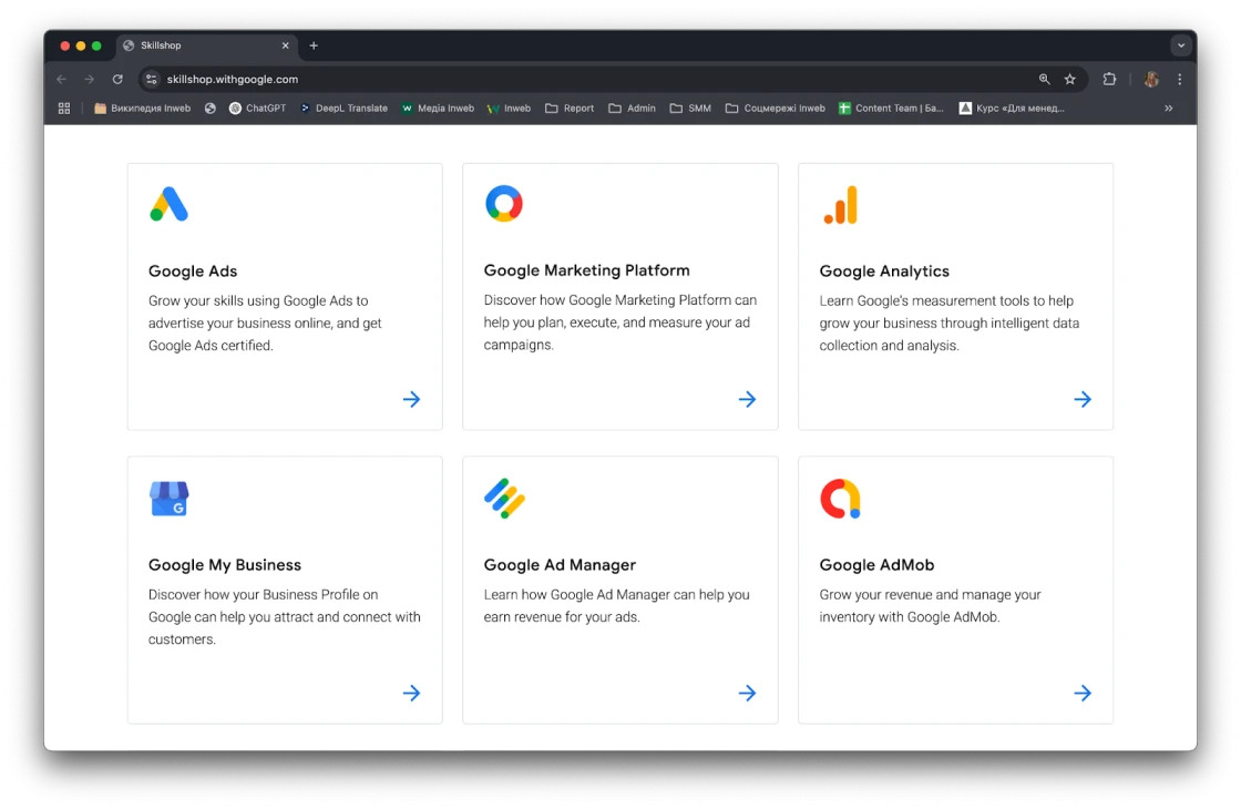 - Відсутність чітких цілей навчання. «Хочу навчитися налаштовувати рекламу» — занадто розмита мета. Без конкретики Ви ризикуєте вибрати курс, який не вирішить Ваші завдання. Якщо Вам просто потрібно запустити рекламну кампанію, не поглиблюючись в деталі, Ви можете скористатися базовою інструкцією з налаштування реклами в Google Ads (подробиці ось тут).