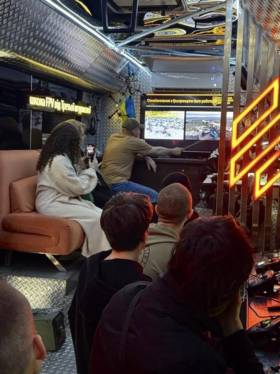 Кожен охочий може спробувати себе в ролі оператора дрона: попрактикуватися на симуляторах та отримати базові навички керування FPV. Автобус обладнаний симуляторами польотів та ураження цілей, а також простором для практичних занять. Навчання проводять досвідчені інструктори з бойовим досвідом Третього армійського корпусу. Є можливість пройти повноцінне навчання та за кілька днів опанувати керування FPV-дроном з нуля і отримати сертифікат.